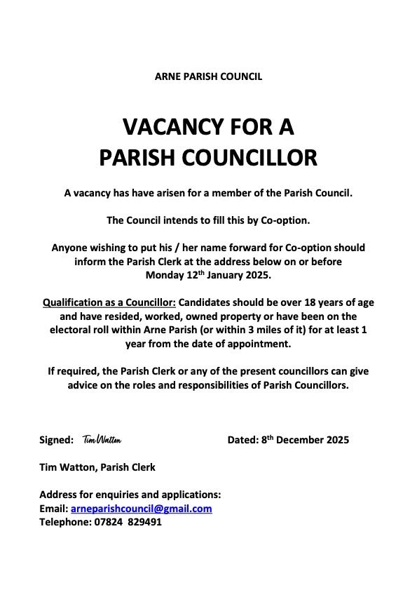 Arne is a rural parish with about 1,370 citizens in settlements from Worgret in the west to Arne hamlet in the east and Furzebrook Road to the south, with most people in villages at Ridge & Stoborough. Apart from a small proportion of mudflat and water to the east, the 29 km2 of the Parish is about half used for farming with a fifth heathland and a fifth woodland.
